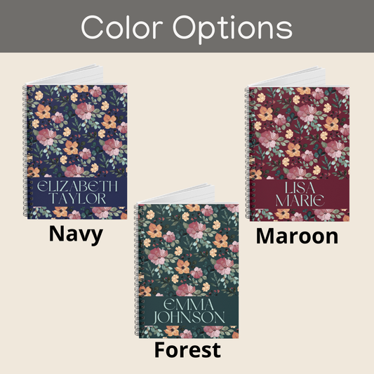 Floral Spiral Notebook with Custom Name